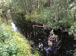 Ручей берёт начало из болота без названия и далее течёт преимущественно в северном направлении по заболоченной местности[5][6].