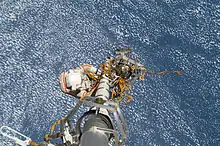 - 24 июня с 21:57 по 22:10 UTC — общая продолжительность 14 минут. Выход был завершён досрочно из-за потери давления в кислородном баллоне Эдварда Финка.