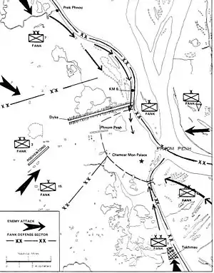 | Итог | Победа красных кхмеров, депортация городского населения, геноцид | ||