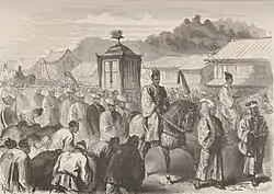 Кацу Кайсю, верховный уполномоченный (гункан бугё:) военного министра при сёгуне вёл переговоры и вынужден был подписать капитуляцию замка Эдо[2].