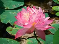 В индуизме лотос выступает одним из атрибутов Вишну, Брахмы, Лакшми, Сарасвати и Куберы. В индийской культуре он символизирует божественную красоту, духовную чистоту. В индуистской литературе и индийской поэзии лотос выступает эталоном красоты. Вишну и Кришна, например, описываются как лотосоокие, а их стопы подобны лотосам. В мифологии индуизма лотос растёт из пупа Вишну, спящего в йога-нидре. Цветок лотоса является одним из ключевых символов в иконографии индуизма. В буддизме цветок лотоса входит в число восьми благоприятных символов[2].