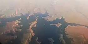 ![]() Аэрофотоснимок залива Падре-Бей и водохранилища Пауэлл, январь 2012 года. | |