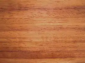 | Цвет | заболонь от белой до бежевой; свежая ядровая древесина от ярко-коралловой до красновато-коричневой, быстро темнеет на свету до коричневого |