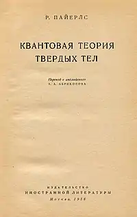 - Р. Пайерлс. [djvuru.512.com1.ru:8073/WWW/c257d943b0293dab3de40cbec5566e64.djvu Квантовая теория твердых тел.] — М.: Изд-во иностр. лит-ры, 1956.
