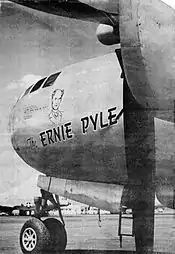 Чтобы почтить память Пайла сотрудники «Боинг-Уичита» оплатили постройку бомбардировщика Boeing B-29, серийный номер 44-70118, который получил имя «Эрни Пайл»[22]. Самолёт был передан на Тихоокеанской военный театр, экипажем командовали лейтенант Говард Ф. Липпинкотт, затем и лейтенант Роберт Х. Сильвер. Изначально был приписан ко 2-й эскадрилье на базе ВВС «Кирни», затем 27 мая 1945 года перешёл в подчинение 20-й эскадрилье ВВС на Тихом океане. Оформление носовой части было удалено по прибытии в зону боевых действий, чтобы не делать бомбардировщик основной целью японских истребителей. «Эрни Пайл» пережил войну и был возвращен в Соединенные Штаты 22 октября 1945 года. Он был передан на хранение на базу ВВА «Пайота», штат Техас, и 25 марта 1953 года утилизирован.