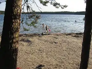 Пляж на берегу озерца Валкеалампи в районе Пайхола