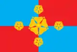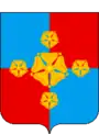 Описание герба: «В четверочастном лазоревом и червленом поле геральдическая роза, сопровождаемая по сторонам четырьмя такими же меньшими: двумя в пояс и двумя в столб».