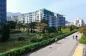 Главным общественным пространством района является озеленённая набережная (Pak Shek Kok Promenade). В глубине района расположен парк Гранд-Плаза с искусственным озером.