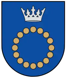 Герб города разрабатывался с оглядкой на легенду: лазурное поле символизирует Балтийское море, янтарное ожерелье напоминает о древнем искусстве, а серебряная корона — морскую богиню Юрате. Герб по эскизу Гражины Ошкините был утверждён 3 сентября 1996 года[4][5].