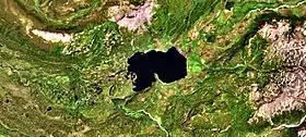 Озеро находится в предгорьях западной части Срединного хребта на высоте 274 метра над уровнем моря[1]. Его площадь составляет 28,2 км²[2]. Площадь водосборного бассейна — 623 км²[2]. Возникло в результате перегораживания долины лавовыми потоками. В западной части акватории вершины полузатопленных возвышенностей выступают над водной поверхностью в виде нескольких покрытых лесом островков[10].