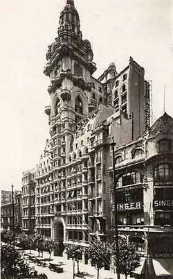 Первый владелец здания планировал использовать первые три этажа для себя, а остальные сдавать в аренду. Сегодня это офисное здание (в нём размещены 520 организаций). Мощность освещения здания составляет 300 000 кандел (свечей). В верхней части здания находится маяк, который работает в особых случаях. Строительство обошлась 4 500 000 аргентинских песо. При строительстве было израсходовано 650 т стали, 3500 т кирпича и 70 000 бочек портландского цемента. Все декоративные материалы, включая каррарский мрамор, были импортированы[3].