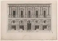 Композиция Палаццо Видони-Каффарелли, как и в Палаццо Каприни, строится на контрасте массивного первого этажа с эффектной рустовкой и облегчённых второго и третьего ярусов с пилястрами тосканского ордера (ранее на втором ярусе имелись полуколонны). Здание увенчано массивным карнизом. Ордерные членения по горизонтали и вертикали в целом уравновешены. Такая композиция в дальнейшем получила широкое распространение не только в Италии, но и во всей европейской архитектуре классицизма[6].