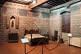 Самая известная комната в здании — Столовая, или «Зал попугаев» (Sala dei Pappagalli), стены которой покрыты фресками конца XIV века, имитирующими драпировки и шпалеры, с орнаментом в виде попугаев, отсюда название. В зале также экспонируются мебель, картины и бытовые предметы из знаменитой итальянской майолики. Среди других комнат — студиоло (кабинет), «Зал павлинов» (Sala dei Pavoni), помещение, которое использовали в качестве спальни.