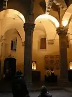 Здание имеет внутренний двор (кортиле), из которого можно наблюдать верхние этажи в лабиринте лестниц, переходов и галерей. В углу двора — «стеновой колодец» (il pozzo), снабжённый хитрыми приспособлениями для подачи воды на верхние этажи. По периметру двора экспонируются различные предметы, характерные для быта средневекового жилого дома.