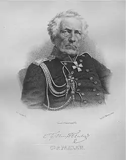 ![]() Портрет графа Петра Петровича Палена художник Е. И. Ботман | |