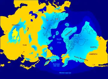 Уже в 1990-х годах на основе комплексных методов палеогляциологии и дедуктивного метода познания была создана модель Панарктического ледникового покрова и заложены основы нового научного направления — мариногляциологии[8]. А уже в начале нового тысячелетия была предложена модель Арктического ледникового покрова[9], который перекрывал мощными взаимосвязанными ледниковыми щитами арктическую сушу и континентальные шельфы Северного полушария, ввключая всю гигантскую область Северного полярного бассейна.