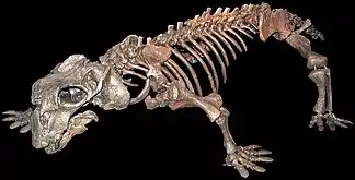 | Отпечаток ископаемого семенного папоротника | Ихтиостега | Скелет листрозавра | Иностранцевия |