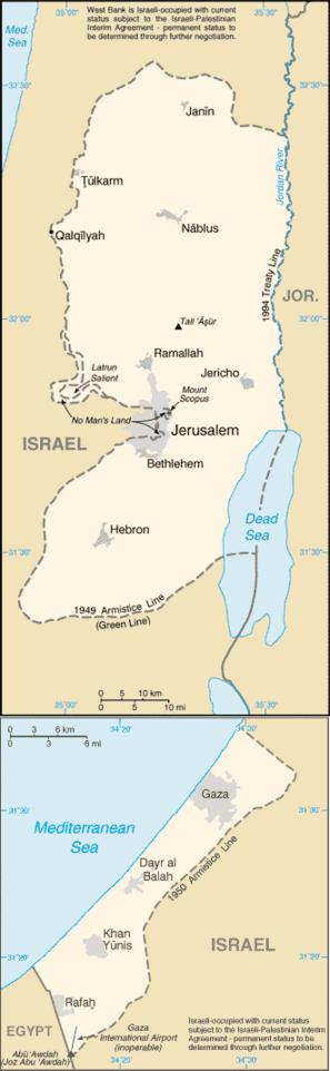 В 1967 в ходе Шестидневной войны Израиль оккупировал Западный берег и Сектор Газа, а также объявил Иерусалим своей «неделимой столицей». Боевики ООП принимали активное участие в арабо-израильских войнах и ответственны за многие теракты против Израиля и других стран. До 1974 года, когда организация получила статус наблюдателя в ООН, она была признана террористической организацией в ряде стран. В подписанном 26 марта 1979 года мирном договоре между Израилем и Египтом Израиль признал «законные права палестинского народа». Обе стороны согласились с тем, что арабскому населению Иудеи, Самарии и сектора Газа будет предоставлена автономия сроком на пять лет, до окончательного определения их политического статуса, но ООП отвергла этот план[7]. Из-за постепенного роста напряжённости в регионе, в декабре 1987 года вспыхнуло восстание (Первая интифада) арабов на оккупированных Израилем территориях. На волне интифады было основано радикальное Исламское движение сопротивления — ХАМАС, признанное террористической организацией в Израиле, США и Европе. Интифада, в ходе которой погибли 1162 палестинца и 180 израильтян, сопровождалась постоянными терактами против Израиля и ответными локальными военными операциями против ООП.