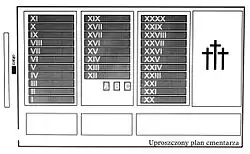 При входе на кладбище находится мемориальный камень с табличкой, на которой выбиты слова неизвестного заключённого, написанные им на стене камеры № 6 тюрьмы Гестапо, которая располагалась на варшавской аллее имени Шуха, 26.