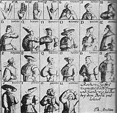 Пальцевый счёт, счёт на пальцах или дактилономия — математические вычисления, осуществляемые человеком с помощью сгибания, разгибания или указывания пальцев рук (иногда и ног). Пальцы рук считаются самым первым счётным инструментом древнего человека с эпохи верхнего палеолита. Счёт на пальцах широко применялся в древнем мире и в средневековье, в настоящее время используется ограниченно, арабскими и индийскими торговцами на Среднем Востоке[1], в европейских странах — в примитивном виде преимущественно детьми или для отображения цифр жестами, ради убедительности в споре по мере перечисления аргументов, а также рефери в боксе при отсчёте секунд во время нокдауна[2].