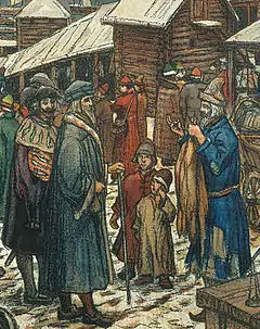 Но наибольшее распространение в Древней Руси получил «счёт сороками» («сороковицами»). Охотники за пушным зверем в Сибири вели счет «сорочками», то есть укомплектованными в мешки шкурками (как правило, 40 собольих хвостов или 40 беличьих шкурок), которые полностью уходили на пошив богатой шубы («сорочки») русского боярина XVI века. Так, в таможенной грамоте 1586 года «сороками» были посчитаны шкурки соболей и куниц, посланные в качестве платы за ведение войны с турками от царя Фёдора Ивановича австрийскому императору Рудольфу. Методика счёта была схожа со «счётом дюжинами», только вместо подсчёта фаланг считали суставы пальцев (переходы между фалангами), которых было всего 8. Если число превышало 8, то при достижении 8 считающий загибал один палец на противоположной руке. По достижении числа 40 все пальцы руки, фиксировавшей полные осьмушки, оказывались сжатыми в кулак. Следы пальцевого «счёта сороками» сохранились в народных суевериях. Например, несчастливым для охотника считался сорок первый медведь и т. д. Также словом «сороконожка» традиционно называлась любая многоножка. Выражение «сорок сороков» или «тьма» для древнерусского крестьянина символизировало некое число, превосходящее всякое воображение и собственно математические познания самого земледельца[2].