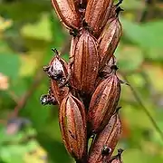 Плод — коробочка с многочисленными мелкими семенами. Плодоносит в июле—августе. Размножается семенами[8].