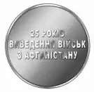 - На оборотной стороне памятной медали надпись в три строки: «25 РОКІВ ВИВЕДЕННЯ ВІЙСЬК З АФГАНІСТАНУ»