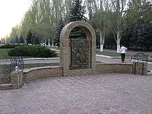 знак на месте массовых расстрелов граждан в 1941—1943, сквер между метизным заводом, ул. Соборной и Торцом