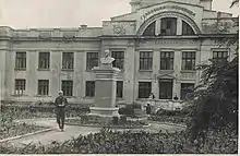 В годы Великой Отечественной войны, в 1942 году немцы взорвали скульптуру вождя, при этом архитектурный ансамбль памятника не пострадал.