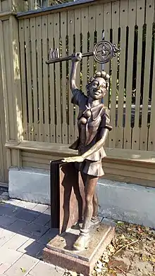 Памятник установлен на улице Фрунзе, рядом с домом, где родился известный режиссёр. Это первый в России памятник Эльдару Рязанову.[5] | ![]() Памятник режиссеру Эльдару Рязанову | |