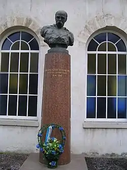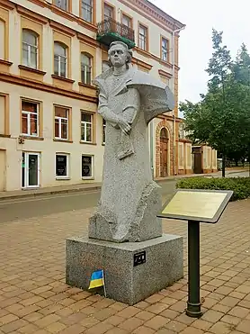 Установлен в 2006 году. Автор — скульптор Петр Герман, уроженец Украины. Архитектор — Ю. Халупняк. Это бронзовый бюст на пьедестале из красного гранита, напоминающего по форме кафедру, на которой начертана раскрытая книга и палитра, а основание украшает украинский орнамент[38]. |