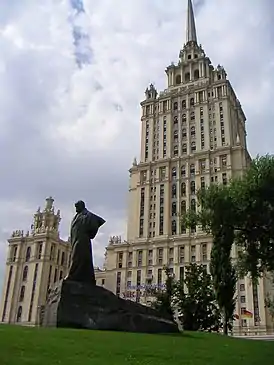 Памятник установлен в центре города, на побережье реки Москвы рядом с гостиницей «Украина» (Кутузовский проспект, 2/1). Авторами памятника является группа скульпторов в составе Михаила Грицюка, Юлия Синькевича и Анатолия Фуженко. Монумент был торжественно открыт 10 июня 1964 года по инициативе Никиты Хрущёва. После реставрации[1] был возвращён на прежнее место 7 марта 2014 года[2]. | |
