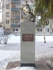 - Памятник-бюст Героя Советского Союза Никонова Е. А., ул. Карла Маркса 59, средняя школа № 19. Открыт 17 декабря 1980 года, . Открытие было приурочено к 60-летию со дня рождения Героя. Высота пьедестала 2,1 м, бюста — 60 см. Пьедестал изготовлен из бетона, облицованного белыми мраморными плитами. Бюст — выколотка из листовой меди. Автор — скульптор Л. С. Максимов[25]. Памятник представляет историческую ценность[26].