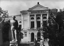 - В Университетской роще, у входа в главный корпус Томского государственного университета (снесён 21 июля 1994 года)[16][17][9];