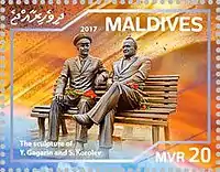 «Звёздные люди Земли» — памятник, изображающий Сергея Королёва и Юрия Гагарина сидящими вдвоём на скамейке и установленный в городе Королёве[26].