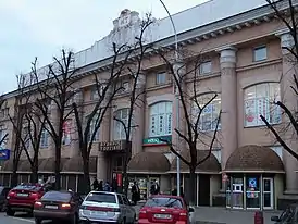 | Дом торговли | Улица Соборная, 16/9 | 1961 | ![]() | Последнее здание Кременчуга, построенное в стиле Сталинской архитектуры. Более поздние здания строились в упрощённом стиле. Дом торговли построен на месте разрушенной немцами Городской думы. В 2016 году со здания демонтирована советская символика. |