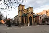 | Здание Кременчугского общества вспомоществования бедным | Улица Победы, 34 | 1910 (сожжено в 1943, восстановлено в 1950-х) | ![]() | Здание, построенное благотворительным обществом, после Революции использовалось иудейским учебным заведением. По состоянию на 2017 год, в здании располагается типография. | |