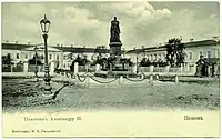 - Выкопировка из плана местности г. Пскова с показанием под литерой А места для предполагаемого строительства памятника Александру II. 25 апреля 1885 г. (недоступная ссылка). Дата обращения: 15 декабря 2015. Архивировано 22 декабря 2015 года.
