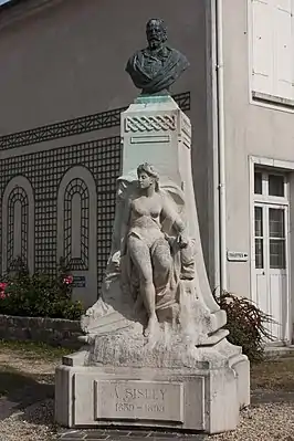 После смерти Сислея комитет, состоящий из видных жителей города и друзей художника, решил воздвигнуть памятник в его честь. Дочь художника обратилась к Огюсту Родену, который принял её предложение увековечить образ живописца, — однако городской комитет выступил против его кандидатуры и заказ был передан скульптору Эжену Тивье.