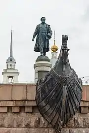 Памятник представляет собой четырёхметровую бронзовую статую на гранитном постаменте, установленную на круглой чугунной площадке в виде ладьи с головой коня. Памятник был создан скульпторами С. М. Орловым и А. П. Заваловым по проекту архитектора Г. А. Захарова и открыт в июне 1955 года, на церемонии открытия присутствовал посол Индии в СССР К. П. Ш. Менон[1][2]. За памятником расположена Церковь Воскресения Христова (Трёх Исповедников)[3].