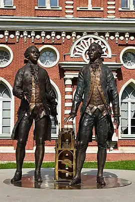 В статуях архитекторов автор старался передать портретное сходство. После установки памятника мундиры, штаны и обувь архитекторов были затонированы. Мундир у Баженова мундир стал красным, у Казакова — зеленым.