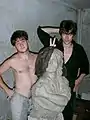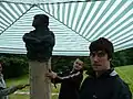 Реставрация постамента памятника Виктору Цою. Справа соавтор памятника Руслан Верещагин