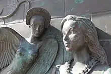 С близкого расстояния видно: провалы глазниц Госпожи Смерти уходят вглубь стены, пустота её черепа — это не контррельеф (заглубленная фигура), а углубления в барельефе.
