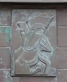 Горельеф Марины Влади смещён относительно центра стены вправо. Повествование о жизни героя ведется слева направо. Марина пришла в жизнь Владимира за 12 лет до его ухода. Она представлена скульптором в роли принцессы Клевской в одноименном фильме Жана Деланнуа (1961 год), снятому по роману М. М. де Лафайет. Роль Марина сыграла, когда ей было 23 года.