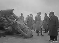 К. Г. Маннергейм, Р. Рюти и другие официальные лица у сброшенного памятника в 1941 году