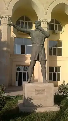 ![]() Памятник в 2014 году перед зданием учебно-тренировочного центра, рядом с Республиканским стадионом | |
