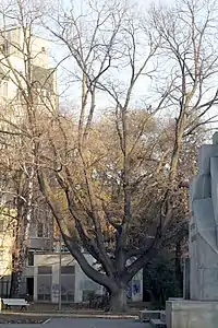 Вокруг памятника разбит парк, из оригинальных посадок сохранились два крупных дуба.
