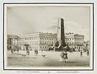 Памятник был открыт 29 ноября 1841 года, в годовщину начала ноябрьского восстания 1830 года, на Саксонской площади, а в 1894 перенесён на Зелёную площадь (ныне площадь Домбровского), чтобы освободить место для строительства собора св. Александра Невского.