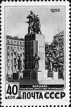 Памятнику посвящена почтовая марка СССР 1955 года номиналом 40 копеек (ЦФА [АО «Марка»] № 1807)[2], а также выпущенная в том же году почтовая марка ПНР (Sc #671).