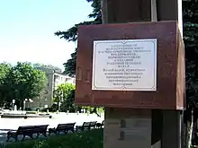 На постаменте закреплена аннотационная доска с текстом:
